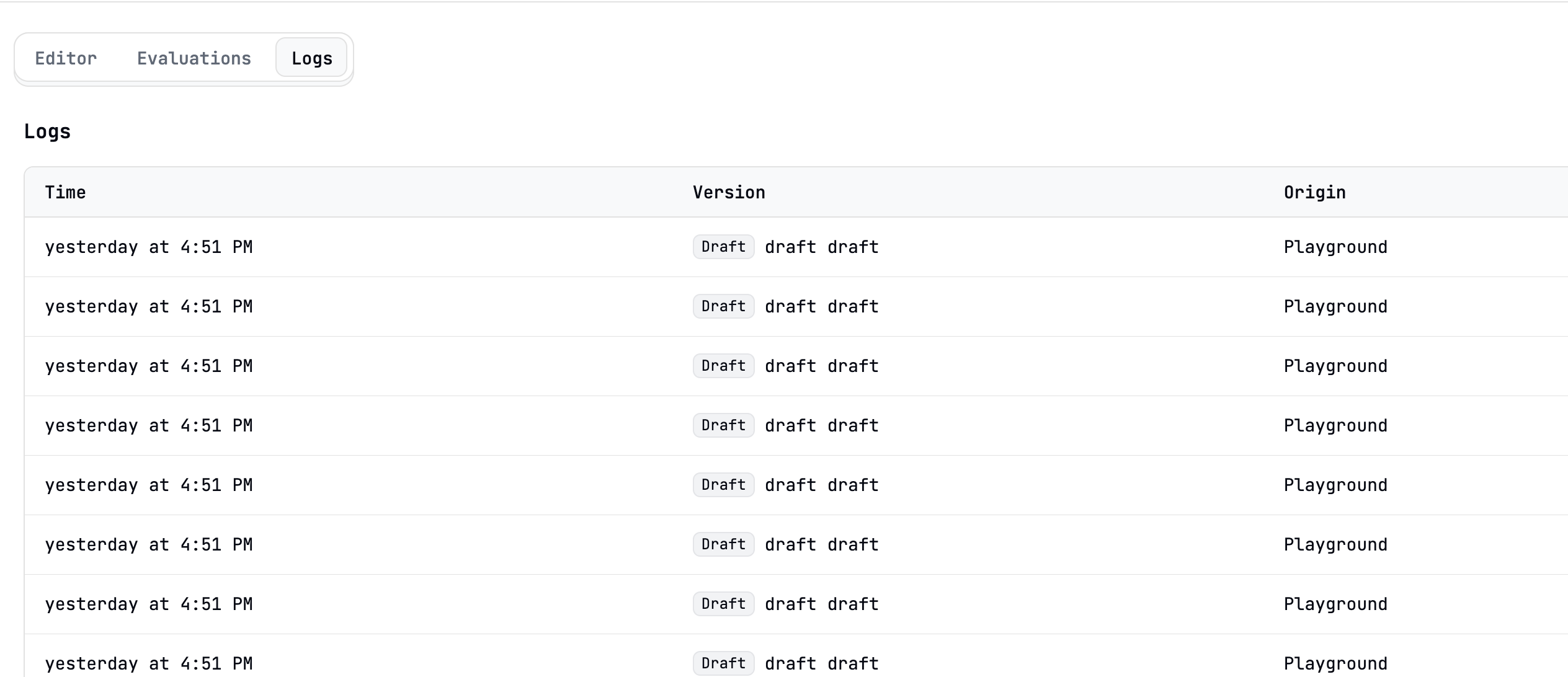 Every time you run a prompt, from the API or from the UI, a new log is created.