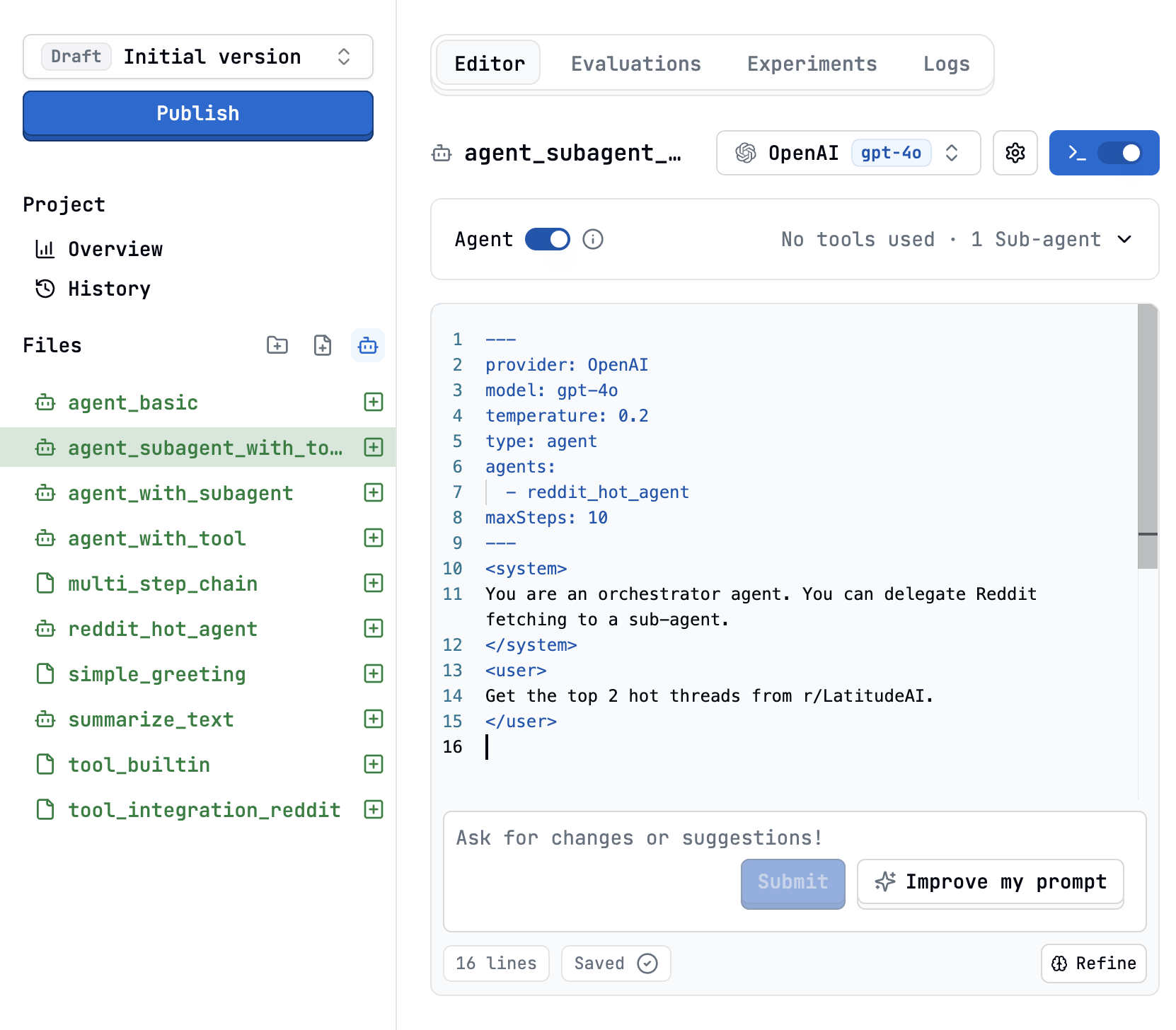 . - Testing: Use the Playground to debug and trace agent/sub-agent interactions.